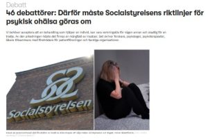 Idag publicerades vår debattartikel i nättidskriften Altinget. En artikel där vi förklarar varför Socialstyrelsens riktlinjer för psykisk ohälsa måste göras om.